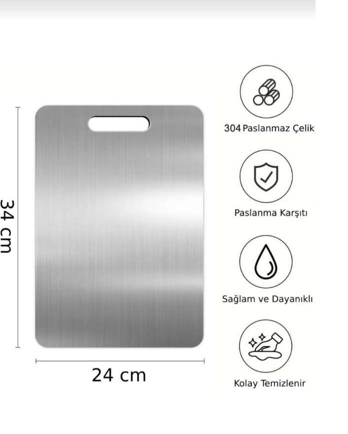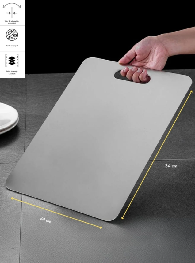 STELİCA Paslanmaz Çelik Kesme Tahtası, koku tutmayan, küf barındırmayan yapısıyla sizin ve sevdiklerinizin vazgeçilmezi olacak. STELİCA Paslanmaz Çelik Kesme Tahtası, sağlığın ve tarzın mükemmel bir kombinasyonunu sunuyor.